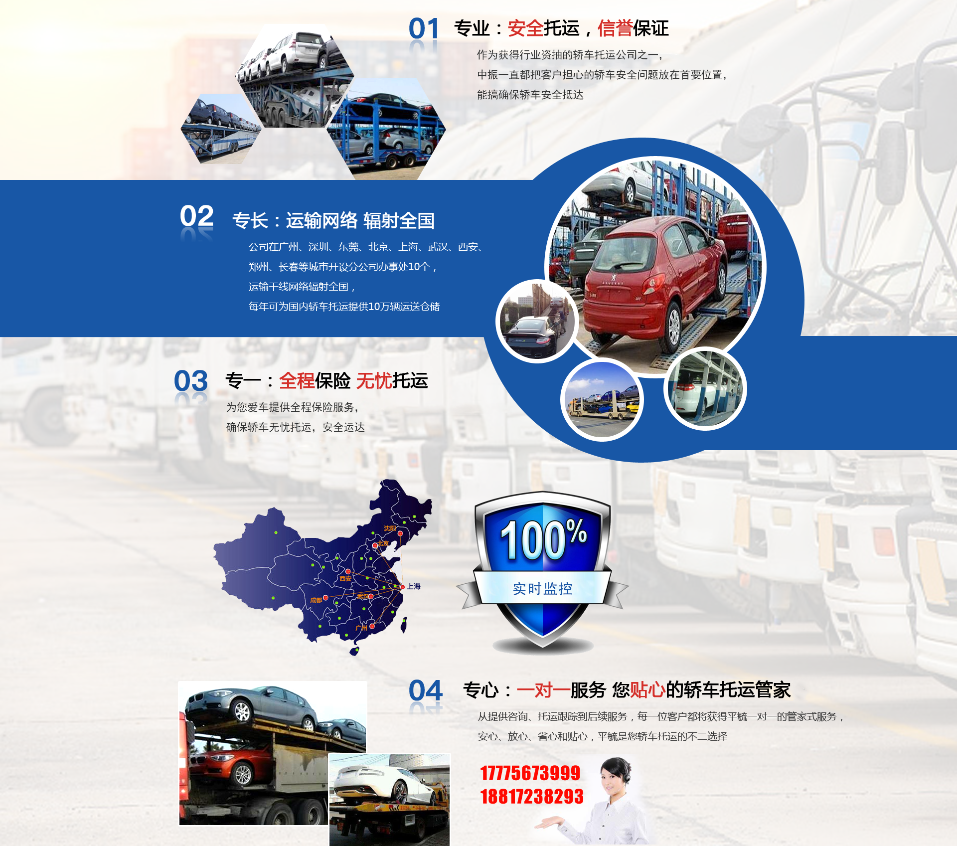 公司承諾:同等的價格,我們比速度,同等的速度,我們比服務(wù),同等的服務(wù),我們比誠信!公司全體員工牢記并且踐行著“尊客、愛車、守信、認真、快速、價平”的服務(wù)理念,珍惜客戶給我們的每一份委托,用心處理轎車托運的每個環(huán)節(jié),讓您的每一次所托都感到物超所值.....
